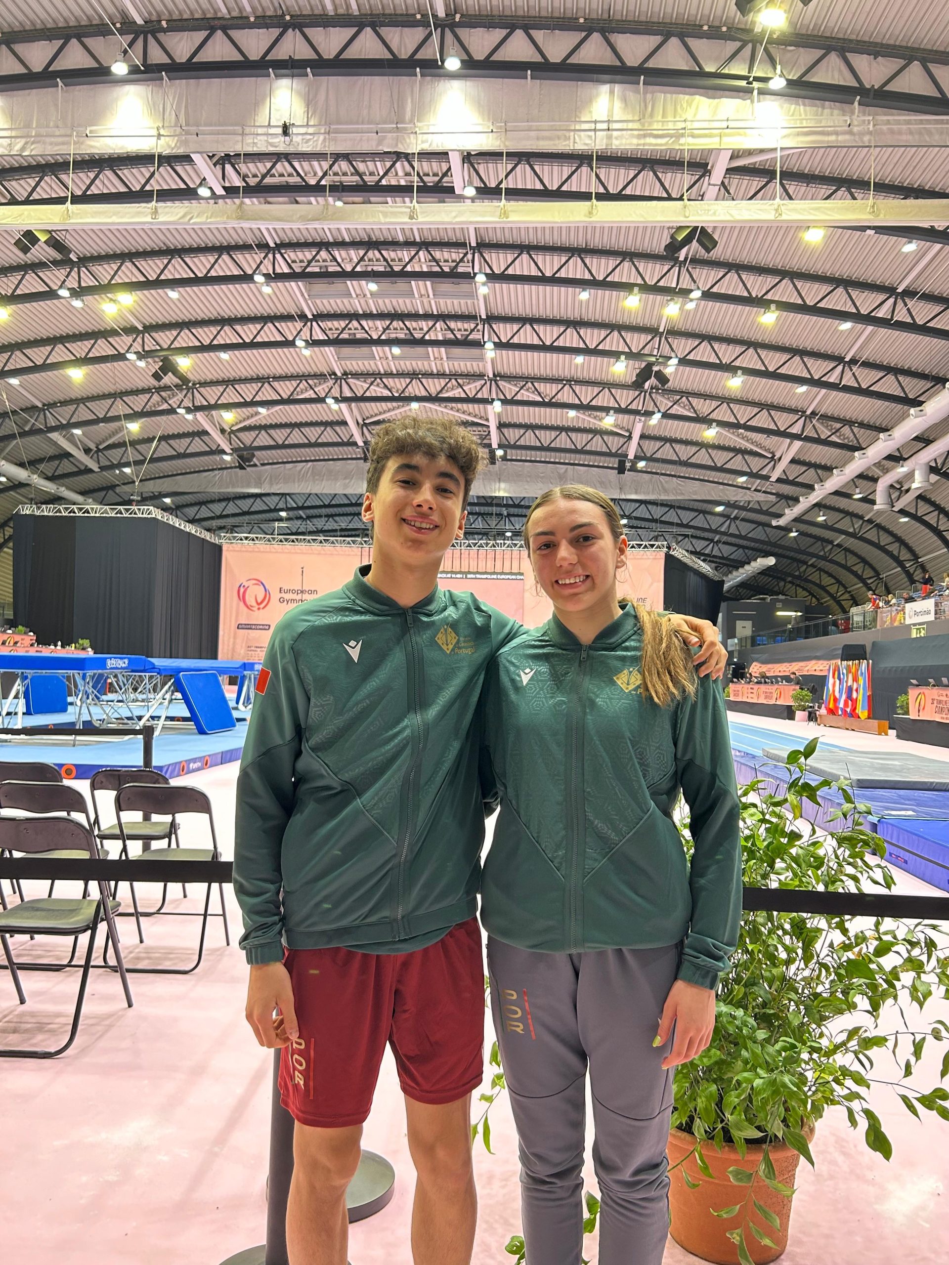 Os dois atletas integraram a seleção nacional nos escalões de formação, competindo como juniores, com Nuno Correia a participar em Duplo Mini-Trampolim e Inês Castro em Tumbling.